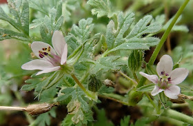 A summer project to learn about Geraniums and Storksbills ended up with difficulties separating Common Storksbill ( Erodium cicutarium ) from Sticky Storksbill ( Erodium lebelii ). The nearest place to Cambridge where